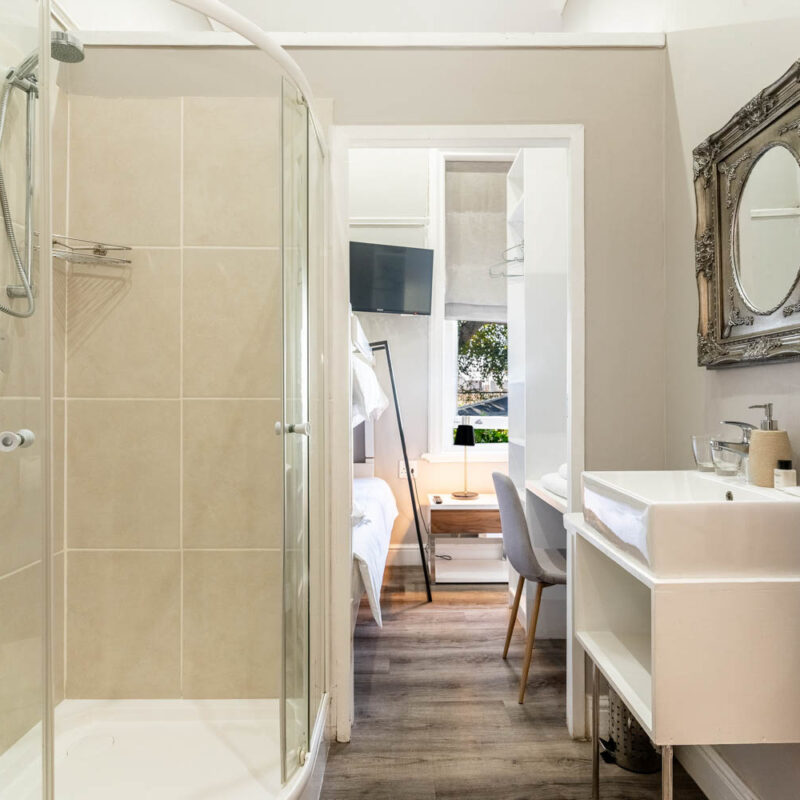 - En suite bathroom with rain shower and Charlotte Rhys amenities