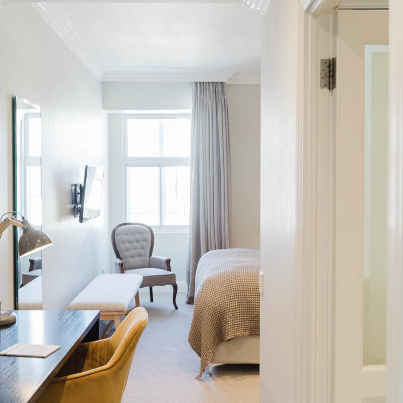 Experience comfort and charm in our cozy Classic rooms, each thoughtfully designed, ranging from 18 square meters. These entry-level rooms, some offering views of the city or Table Mountain, are perfect for single travellers but also welcoming for couples seeking an intimate stay.